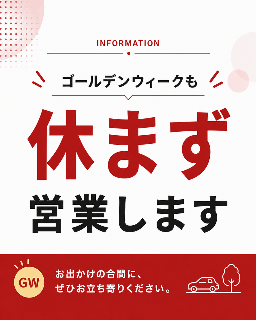 🎏 ゴールデンウィークも休まず営業いたします